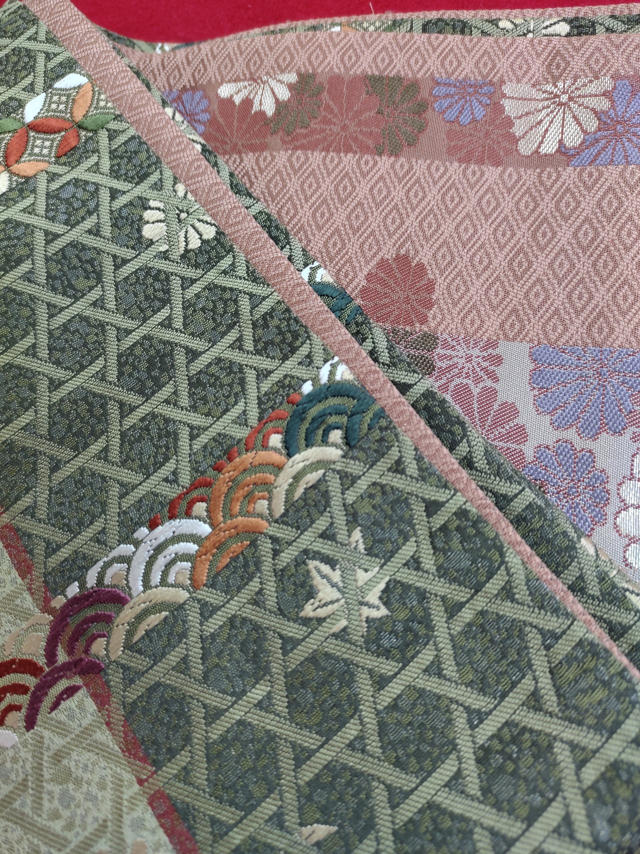 ⑤深緑色に籠目青海波模様