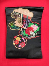 いろんなシーンで活躍する牡丹と菊の花柄の刺繍のアンティーク名古屋帯です