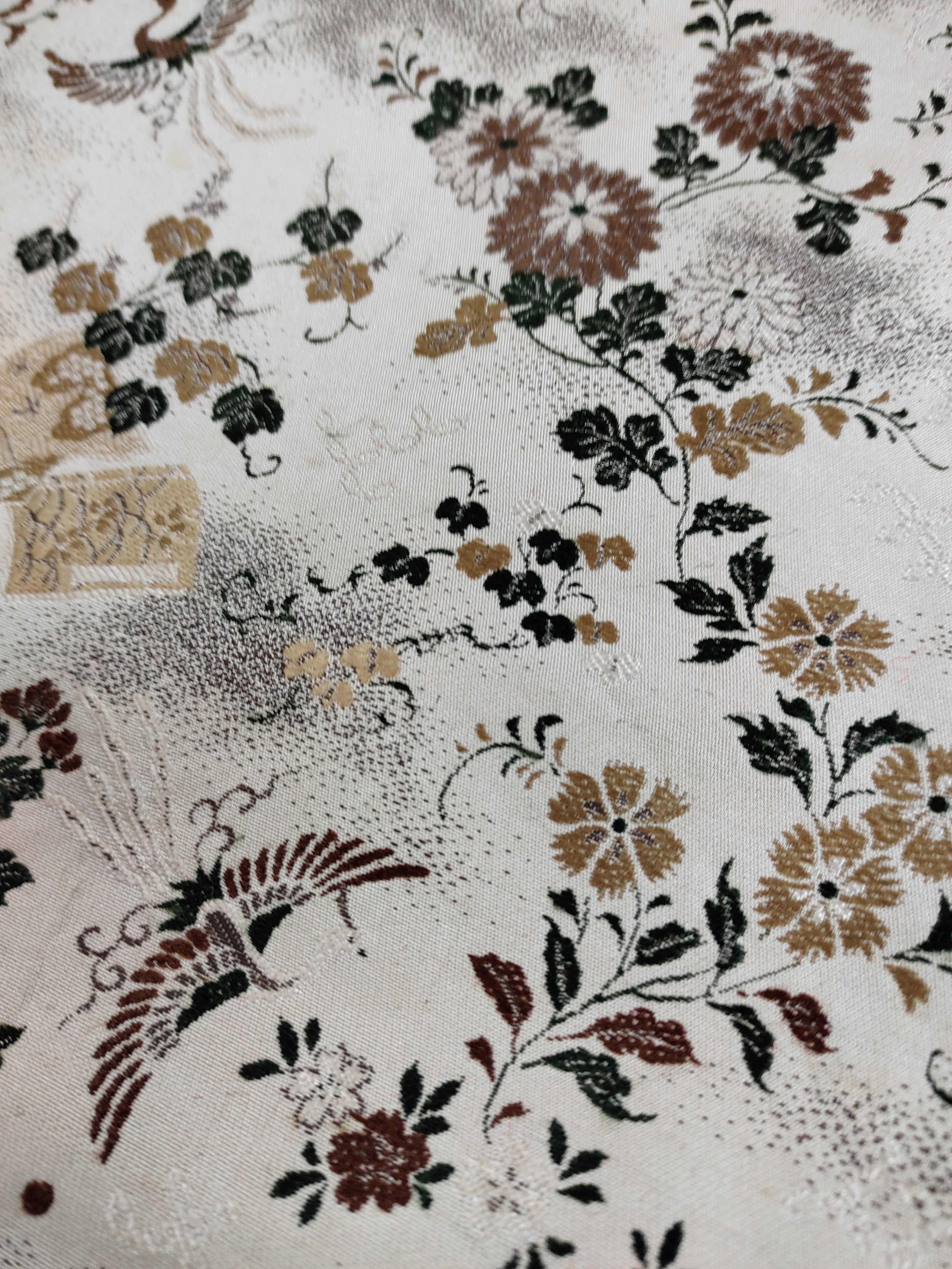 この帯は、特別な日のお出かけやフォーマルな場面にも大変おすすめです。百花模様の美しさが、あなたの着物スタイルをさらに引き立ててくれることでしょう。お気に入りの着物と組み合わせて、素敵なコーディネートをぜひ楽しんでください!