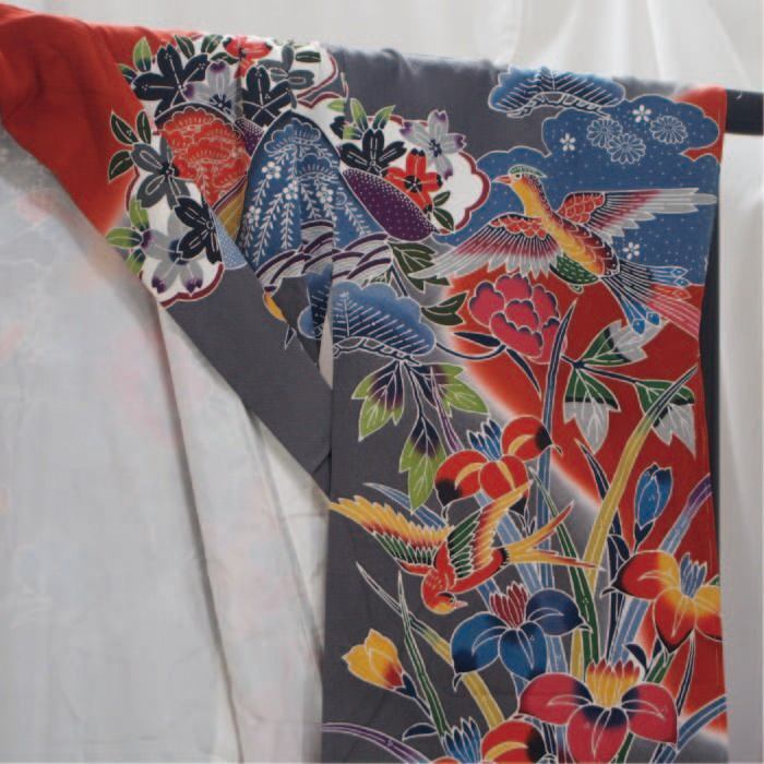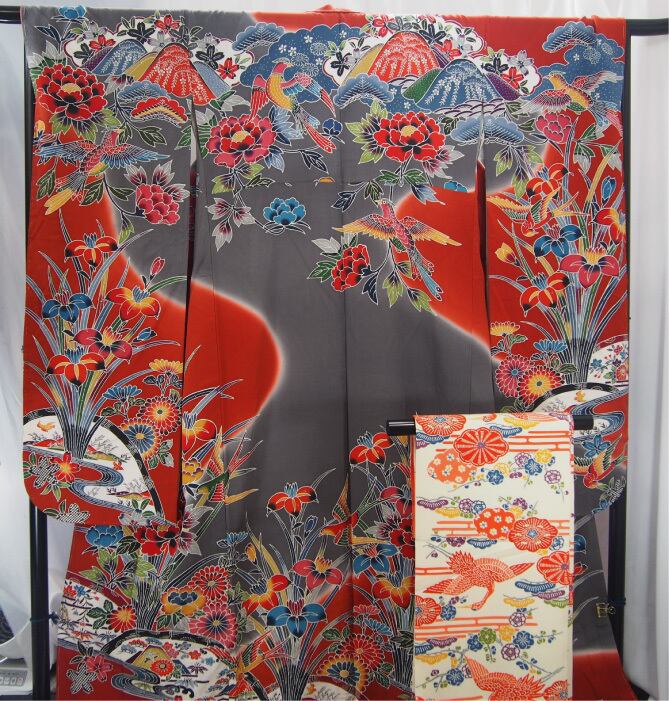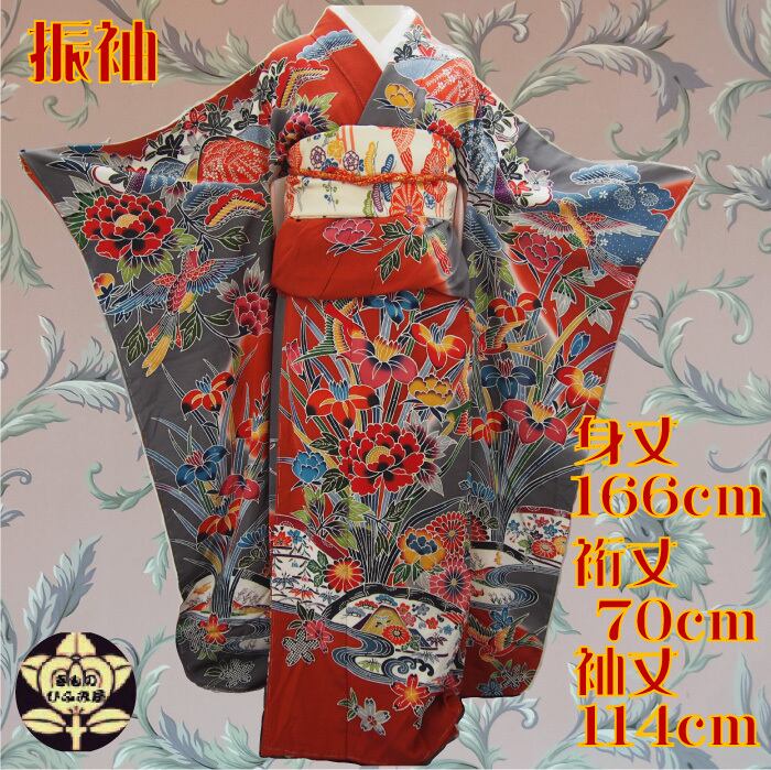 【振袖セット】紅型染めの百花と山野・鳳凰柄の振袖 【振袖フルセット】すぐ着られる一式セット|成人式・写真撮影にも◎