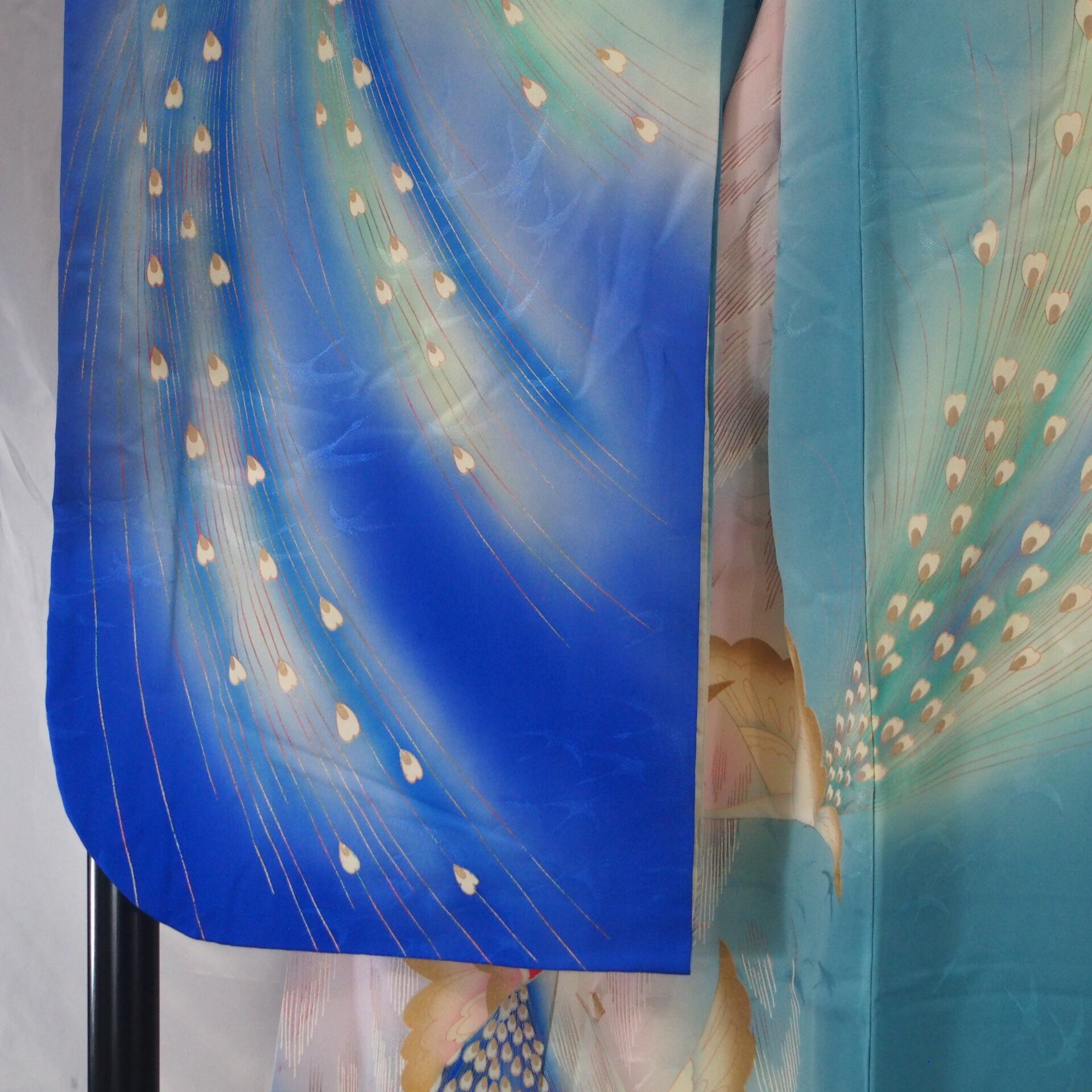 【振袖セット】空色に大空に舞い上がる孔雀柄の振袖 【振袖フルセット】すぐ着られる一式セット|成人式・写真撮影にも◎