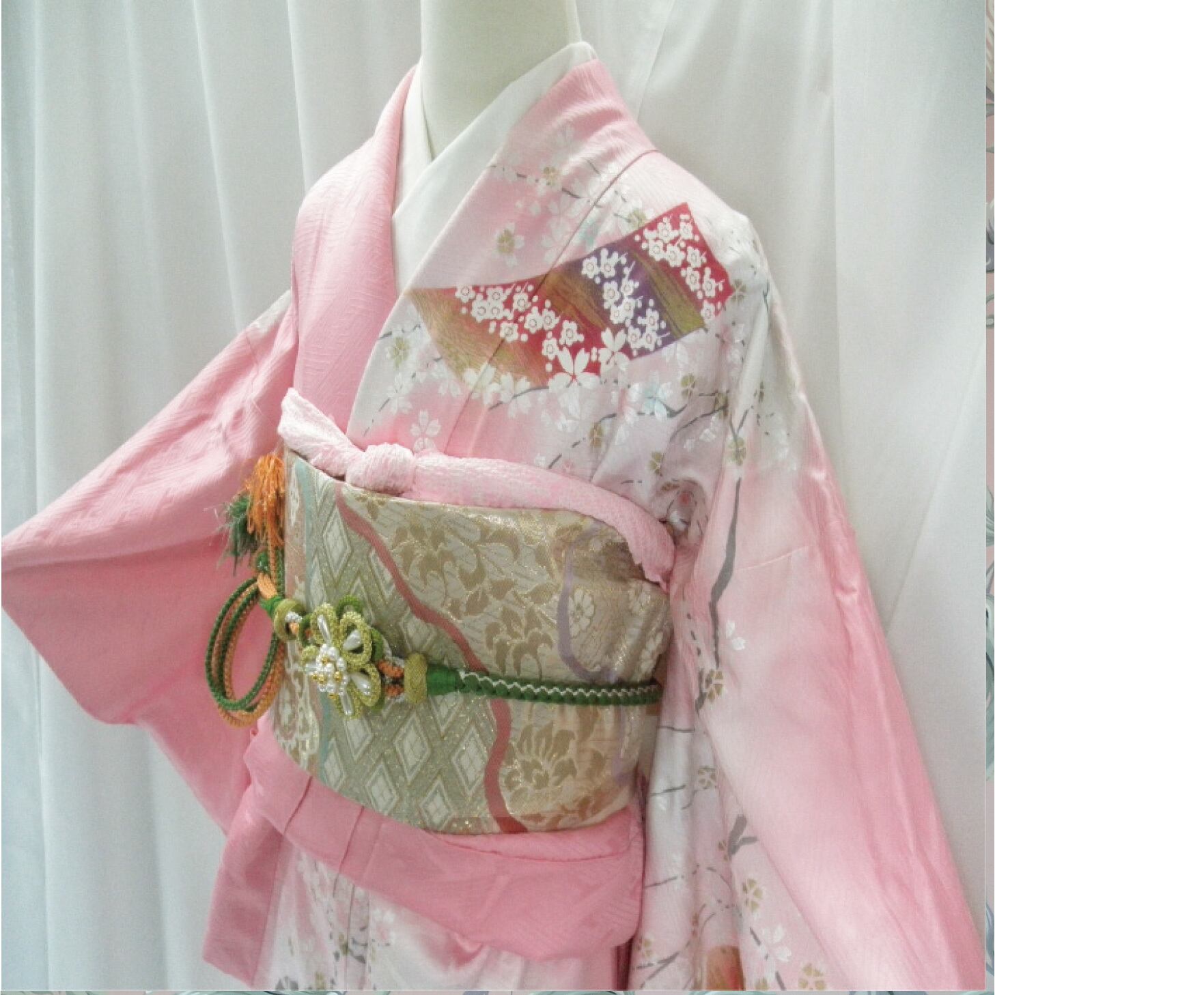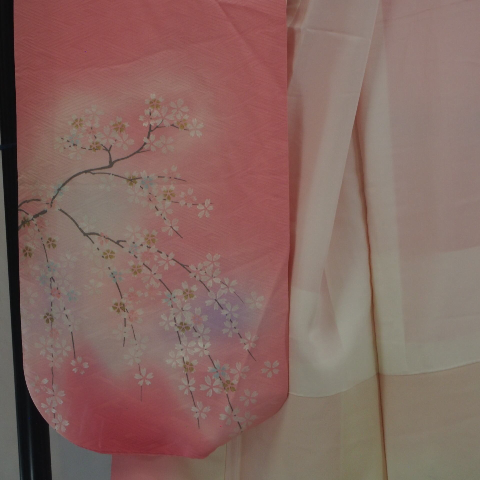 【振袖セット】桜色に鶴と桜柄の振袖 【振袖フルセット】すぐ着られる一式セット|成人式・写真撮影にも◎