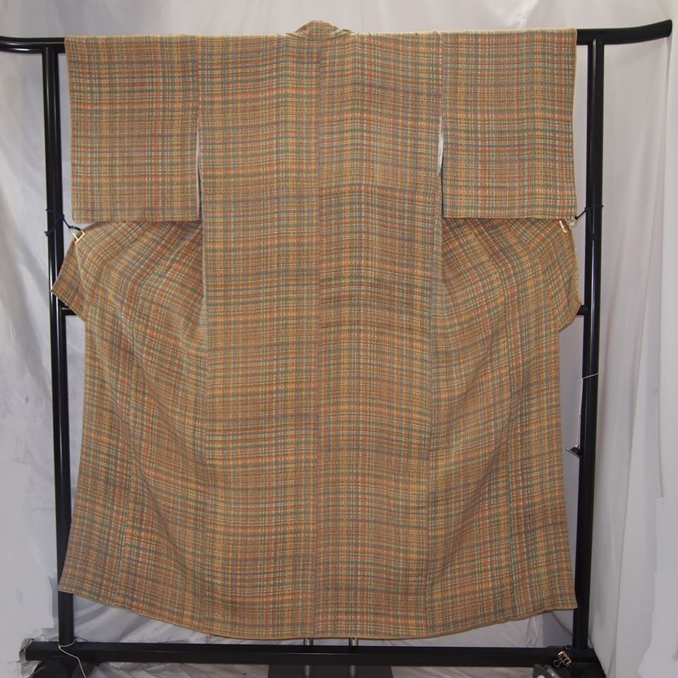 この【小紋】縮緬地に三色の格子模様の着物は、おしゃれな女性にぴったりの一枚です。繊細な縞模様と上品な色合いが、どんなシーンでも華やかさを演出します。着用するだけで、周りの視線を引き寄せること間違いなしです。