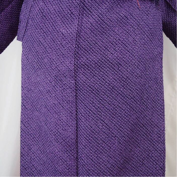 【総絞り小紋】菫色に絞り無地の着物 -||- 日本の職人がひとつひとつ手作りした、上品で美しい総絞り小紋。糸を絞り、染め、織るという繊細な工程を経て誕生した一枚は、菫色に優しく映える絞り無地のデザインが特徴です。着用するたびに、日本の伝統美と技術力が感じられる逸品。