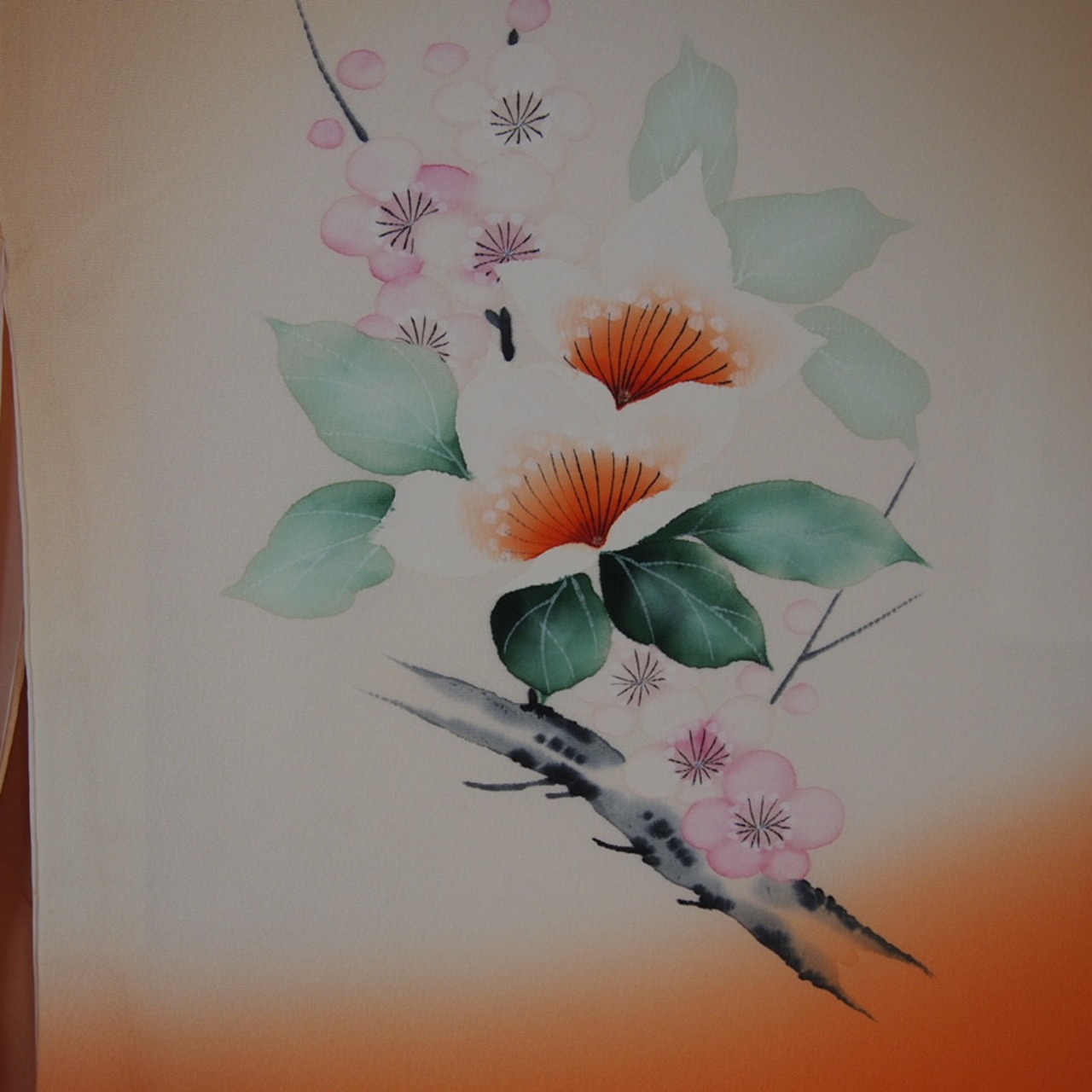 上品な練色と鮮やかな橙色が絶妙に組み合わさった桔梗模様の着物をご紹介します。日本の伝統的な染色技術を継承しながら、現代風にアレンジしたデザインで、着る人を優美に演出します。華やかな色彩と柔らかな着心地で、特別な日やお出かけにぴったりの一着です。