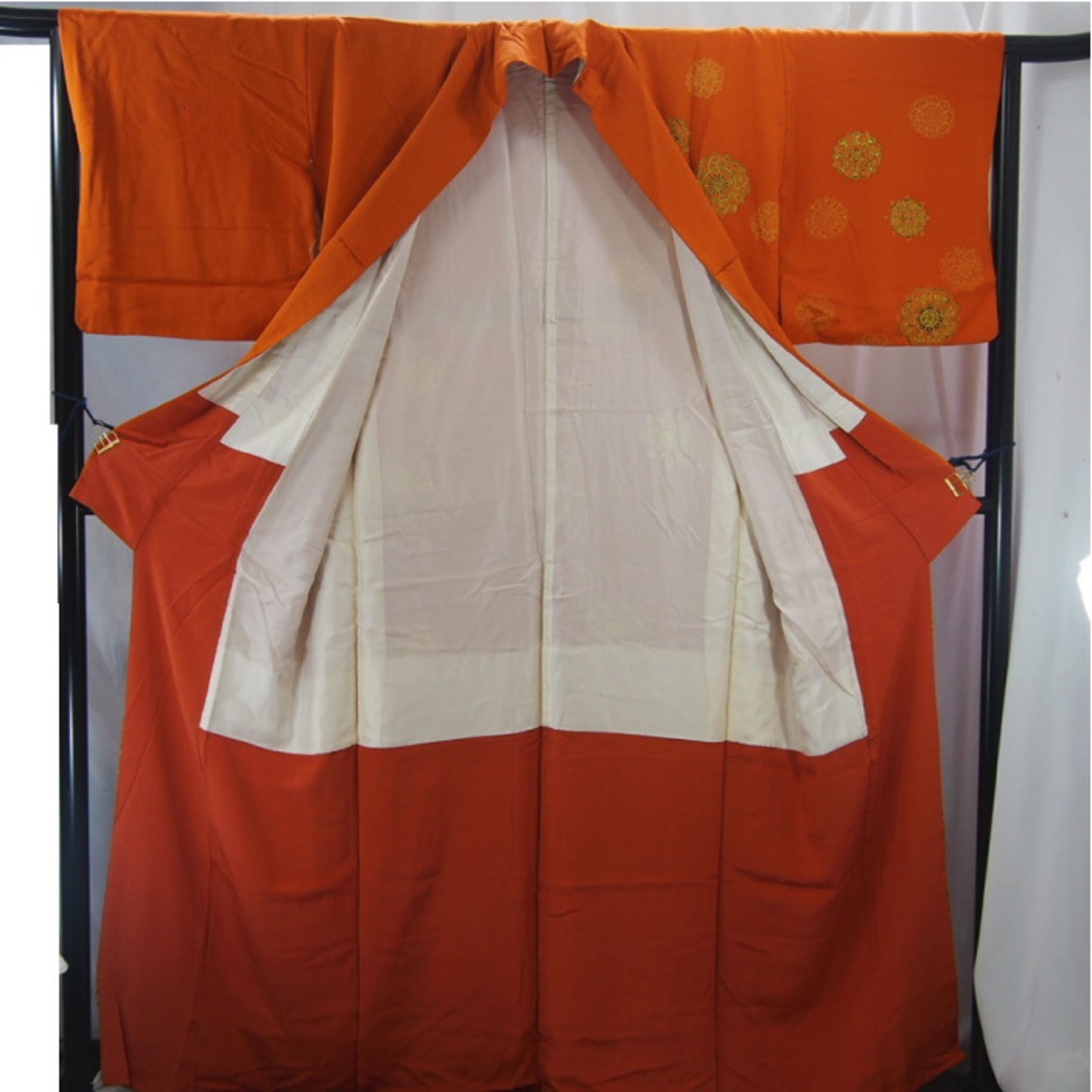 朱色に職工文模様が施された華やかな訪問着をご紹介します。この着物は、格式高い正装や結婚式などの特別な場にぴったりです。朱色の鮮やかさと職工文模様のエレガントさが融合した一着は、周囲の視線を引きつけること間違いなしです。着る人を上品で華やかに演出してくれることでしょう。着物を通じて、日本の伝統と美しさを感じてみませんか。
