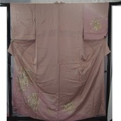 【訪問着】藤色に蛇籠と撫子模様の着物