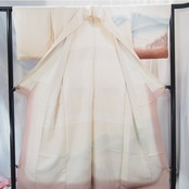 訪問着】白地にぼかし山野柄の着物。優雅で華やかな白地に描かれたぼかし山野柄の訪問着。シンプルながらも上品なデザインで、各種パーティーやお呼ばれのシーンで活躍します。華やかな帯との組み合わせで、洗練された着姿を演出できます。