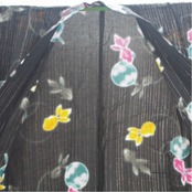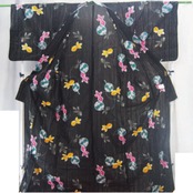 【浴衣】黒色綿地に縦ストライプに金魚柄の浴衣