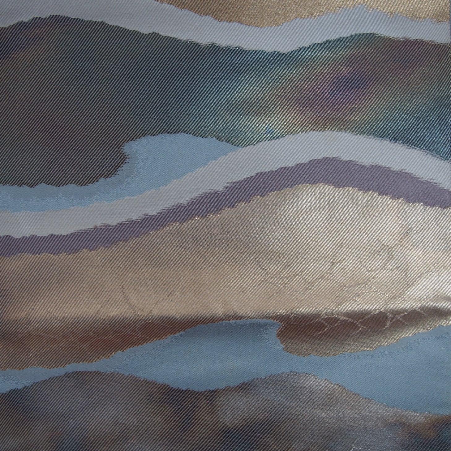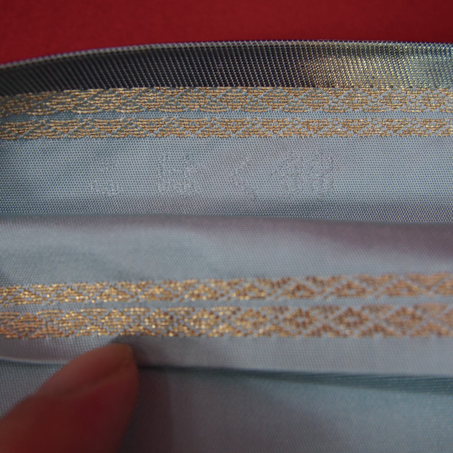 【西陣服部織物】の伝統技術が光る、白藍色箔に雲海模様の帯。繊細で美しい模様が特徴で、上品な輝きが装いを引き立てます。結婚式やお茶会などの特別な場面にピッタリの一本です。熟練の職人がひとつひとつ丁寧に織り上げた帯は、着る人を華やかに演出してくれます。