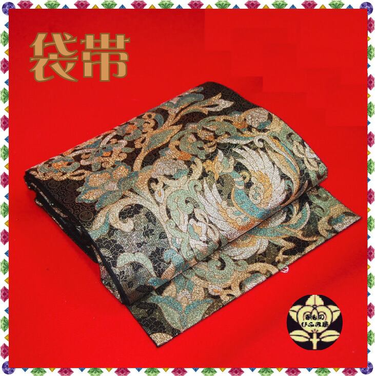 伝統的な王朝錦の柄が施された、九百引織の美しい黒色の袋帯