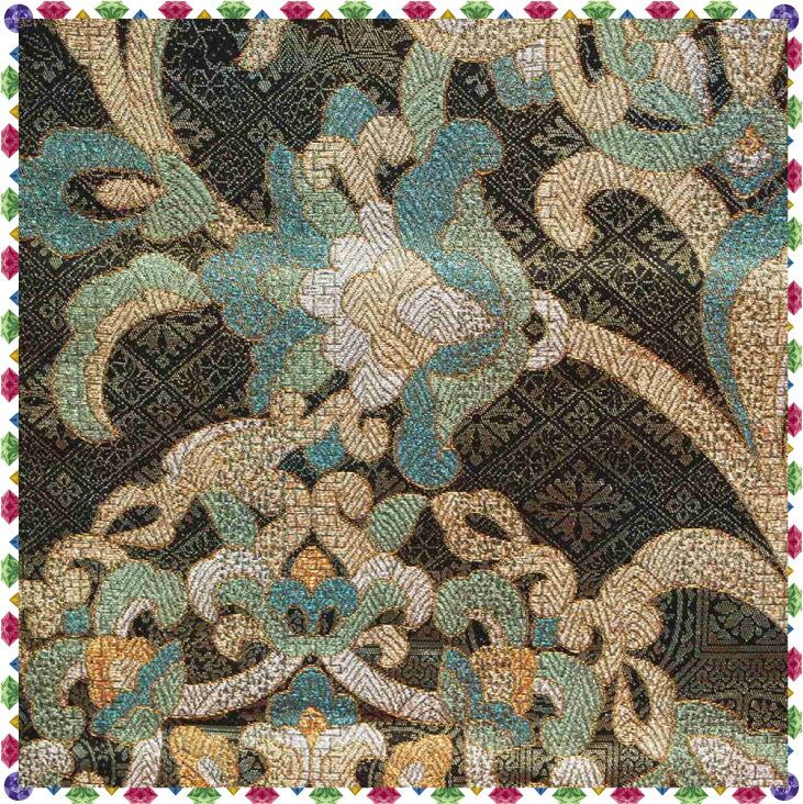 「王朝錦 九百引箔織」の更紗模様の帯です。